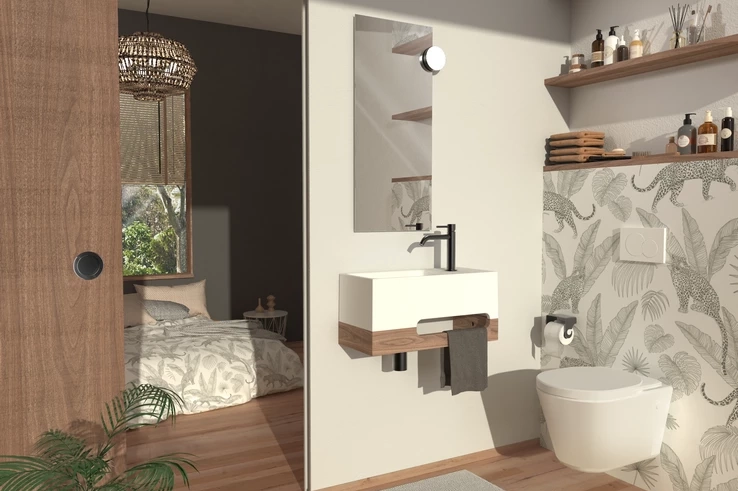 Comment faire ? Rien de plus simple... Pour votre carrelage, privilégiez des teintes neutres et délicates comme le beige, le crème, le gris clair, le rose pâle...Côté aspect, optez pour le grès cérame effet pierre naturelle ou bois, pour une ambiance zen et apaisante. Pour un rendu authentique, choisissez des finitions mates et des textures délicates. Dans la salle de bain, préférez des sanitaires aux lignes minimalistes, des baignoires îlot aux courbes harmonieuses et des meubles aux lignes simples et légères.